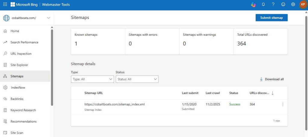 - Verify your domain in Bing Webmaster Tools.